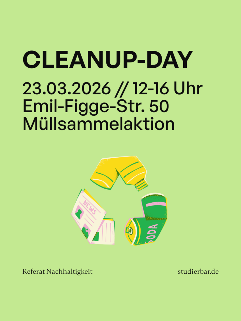 ♻️ Im Rahmen des CleanUp-Days veranstalten der AStA der FH Dortmund und der AStA der TU Dortmund gemeinsam eine Müllsammelaktion rund um den Campus. Komm vorbei, pack mit an und setz gemeinsam mit uns ein Zeichen für eine saubere Umwelt – jede helfende Hand zählt!
