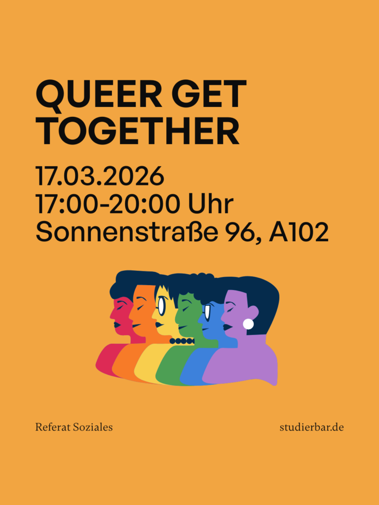 Gemeinsame Zusammenkunft der queeren Studierendenschaft unserer Fachhochschule: Ein sicherer Ort zum Begegnen, Austausch und zur gemeinschaftlichen Planung von Aktionen.